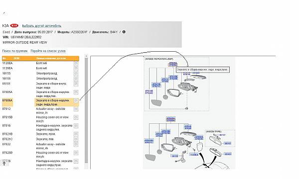 Как недорого купить правое зеркало на Kia Cee'd II |